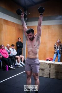 12:00 AMRAP: 6 Squat Cleans, 65/45kg 12 Handstand Push-ups 18 Dumbbell Front Rack Reverse Lunges, 22.5 / 15 kgs